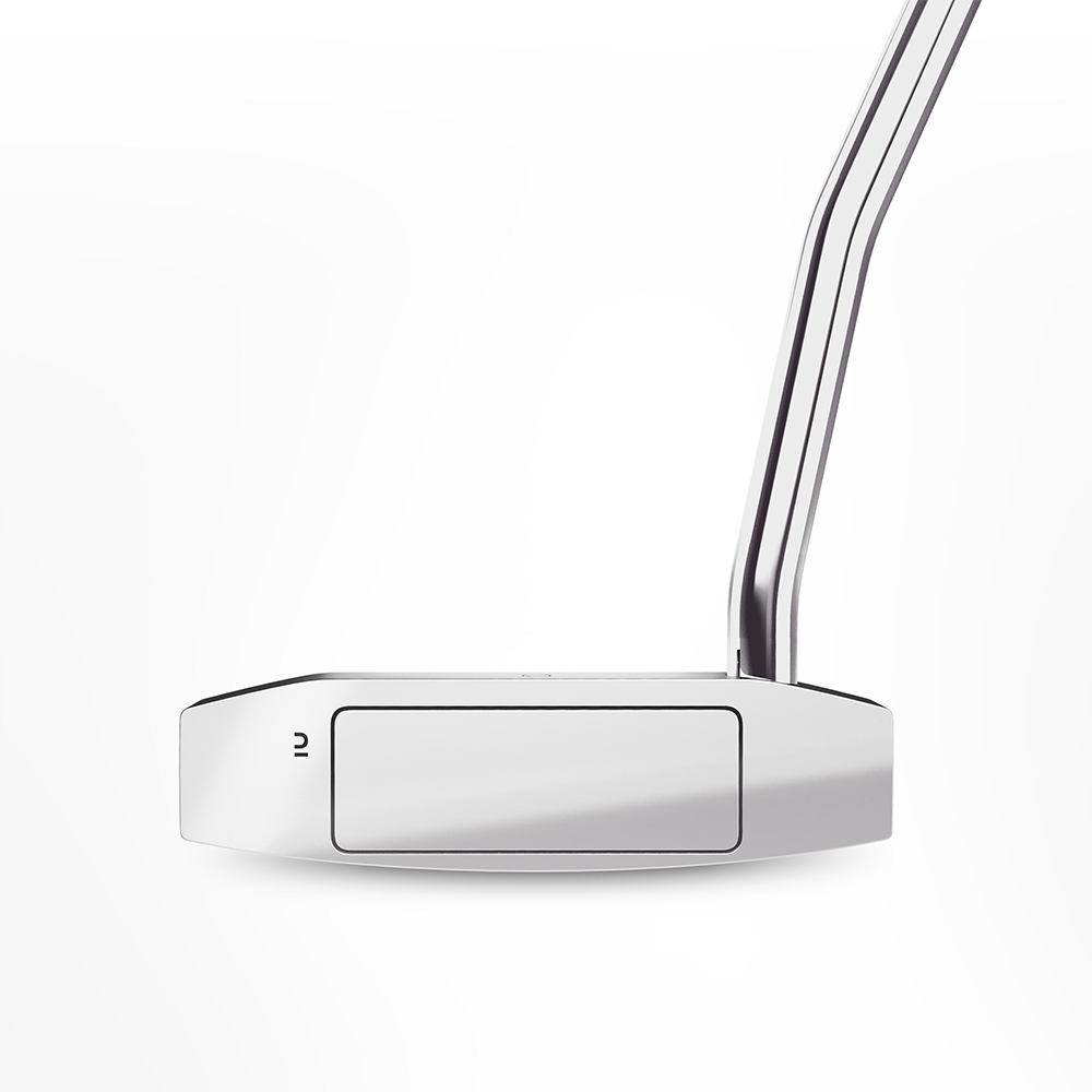 Decathlon developed this golf putter with two large parallel lines to help you aim at the hole and improve your alignment. The Putter shape renowned for its stability on impact when mishit, on long and short putts.