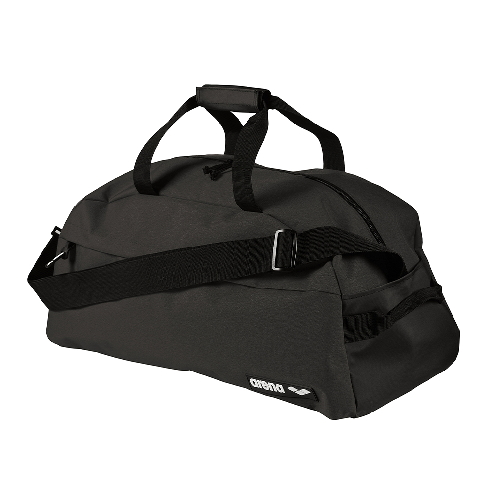Our Team 25 Duffle Bag is made of a robust fabric and has a stowaway shoulder strap. Attach the two top handles for easy hand transport or wear them like a backpack. The top zipper opens to reveal a spacious interior with a free swimbag for your pool kit or day bag.