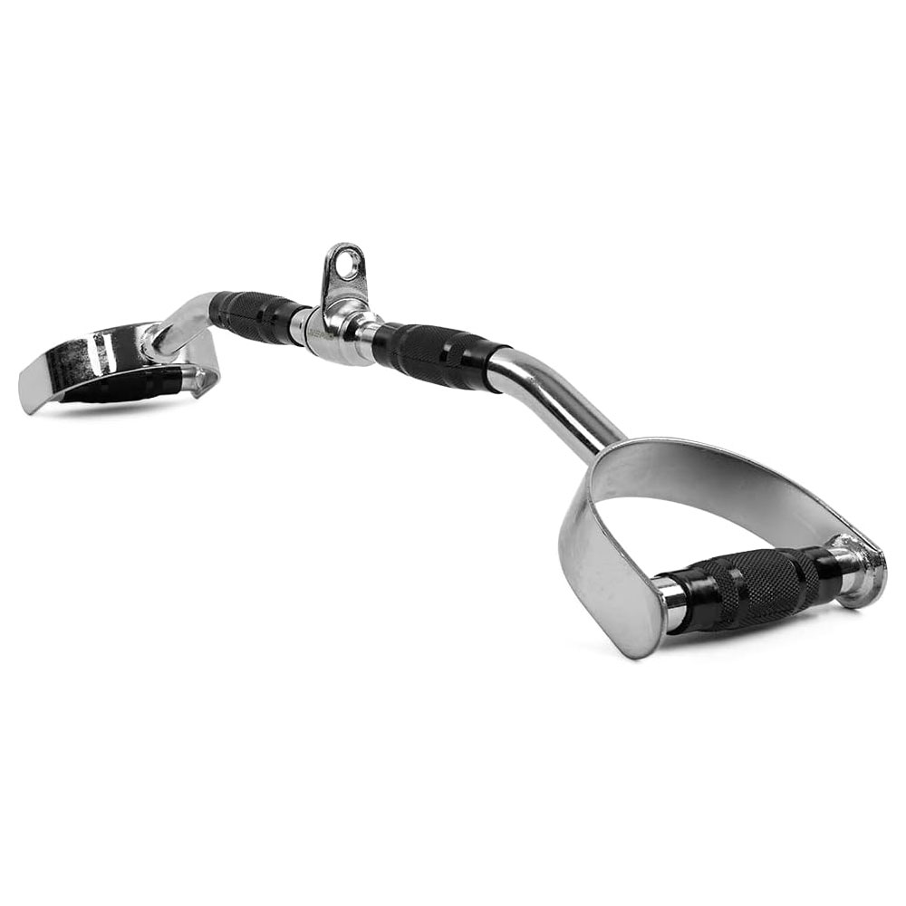 Pressed on non-slip PU-covers. Comes with 2 handle variations allow back training on the cable tower.