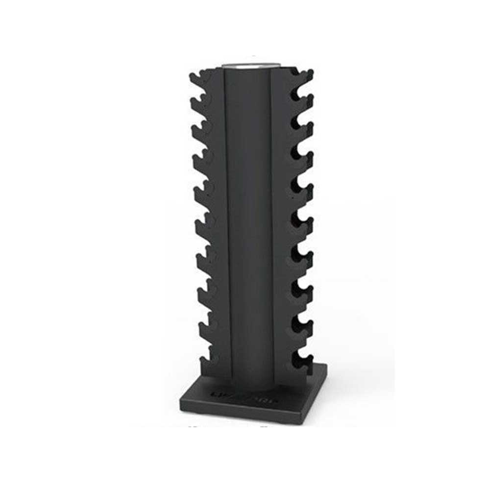 Sleek design coordinates easily with other fitness equipment. Holds 10 pairs of Hex Dumbbells.