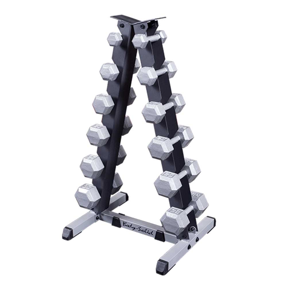 Place it against a wall or center it in a room. Heavy-gauge steel construction offers maximum durability and better performance in less space. For hex dumbbells up to 35 lbs. only.