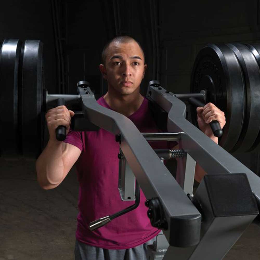Perform squats with 300, 500, 800 pounds and more! The Leverage Squat Machine is the strongest machine in its class and can handle the heaviest loads with ease. This machine is built for those who want it all: power, mass and performance!