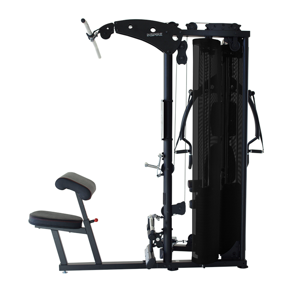 - Resistance Ratio: Lower pulleys 1:2, Lat/Row/Curl pulley 1:1, Leg Ext 1:1, Leg Curl 3:4, Leg Press 2:1, Press Arm 1.2:2