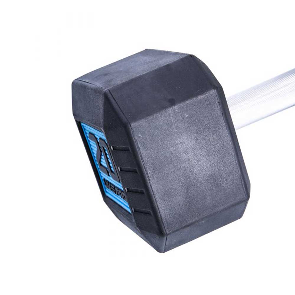 The rubber dumbbells are octagonal shaped with a wide design. The weight ranges from 2.5kg to 50kg and are high quality and durable. Each solid dumbbell head is accurately calculated, cut, and drilled out. The weight tolerance is +/- 2%.
