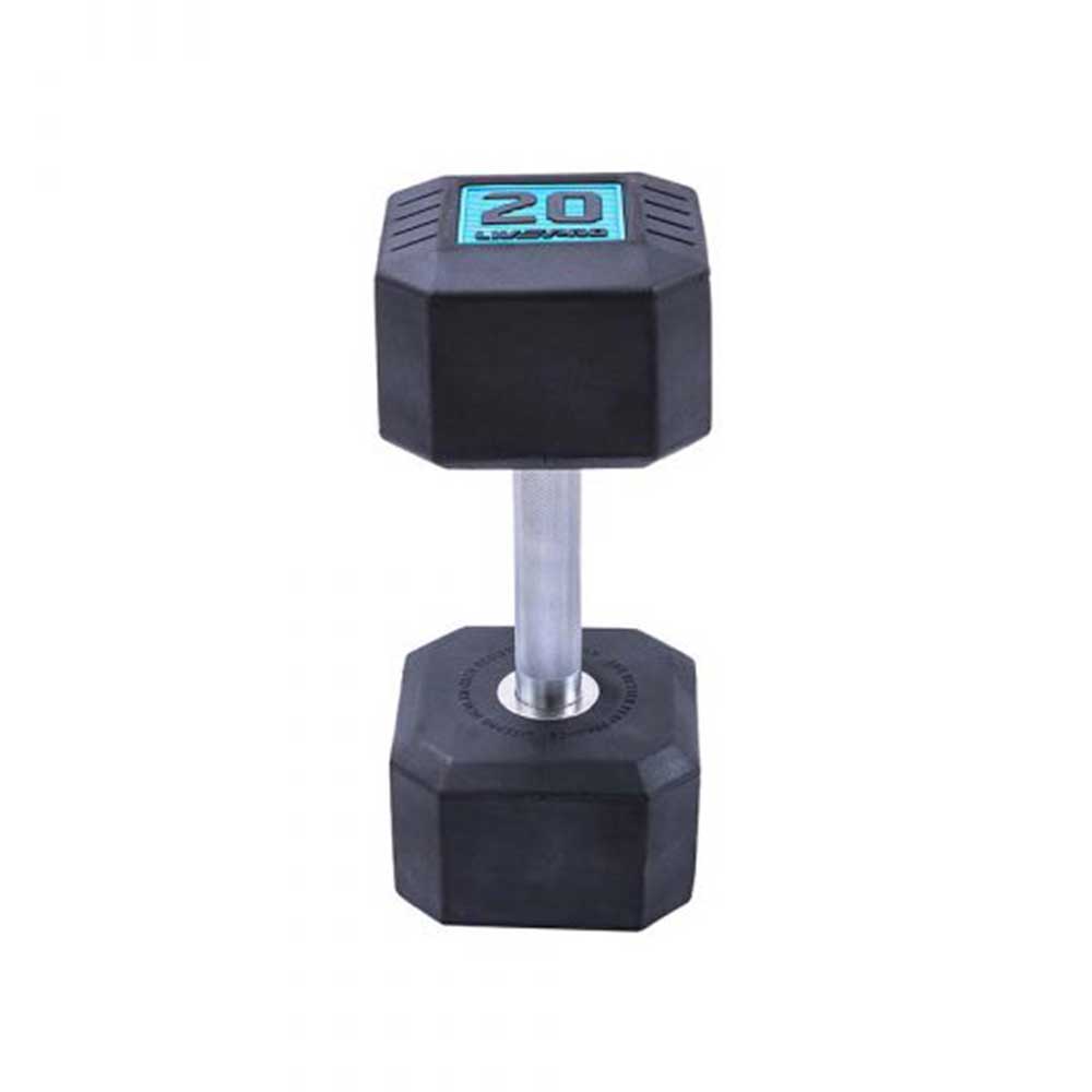 The rubber dumbbells are octagonal shaped with a wide design. The weight ranges from 2.5kg to 50kg and are high quality and durable. Each solid dumbbell head is accurately calculated, cut, and drilled out. The weight tolerance is +/- 2%.