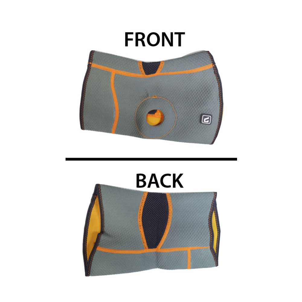 This Knee Guard is suitable for various sports, training and exercise. It features an open-patella design that reaches out and embraces the weak and sore muscles, providing firm and effective support to the knee. It includes high stabilizers that help to provide medial and lateral support. The mesh insert at the back promotes ventilation. The neoprene blend provides strong support, soothing warmth and added comfort. It minimises bunching and allows ease in movement without slipping or rolling. It is highly durable, and can be worn on the right as well as the left knee.