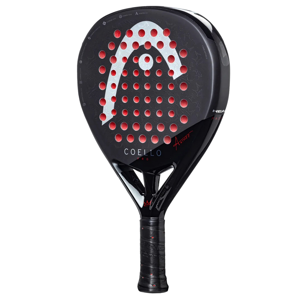 Designed and developed in collaboration with world number one Arturo Coello, the COELLO PRO 2025 PADEL RACQUET has an exclusive, elegant design with personal touches such as his crown logo and signature.