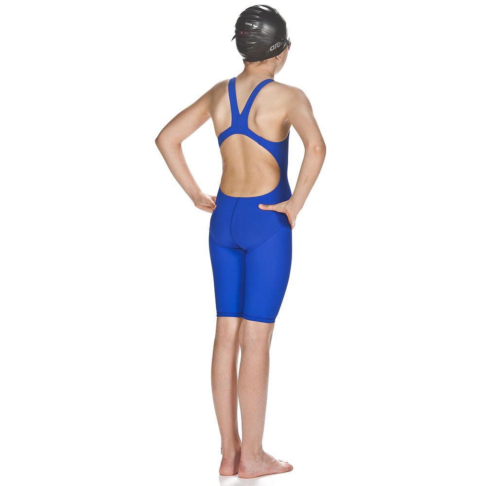 Durable, streamlined and powerful, this FINA-approved full body swimsuit hits just above the knees and has an open back for optimal freedom of movement.