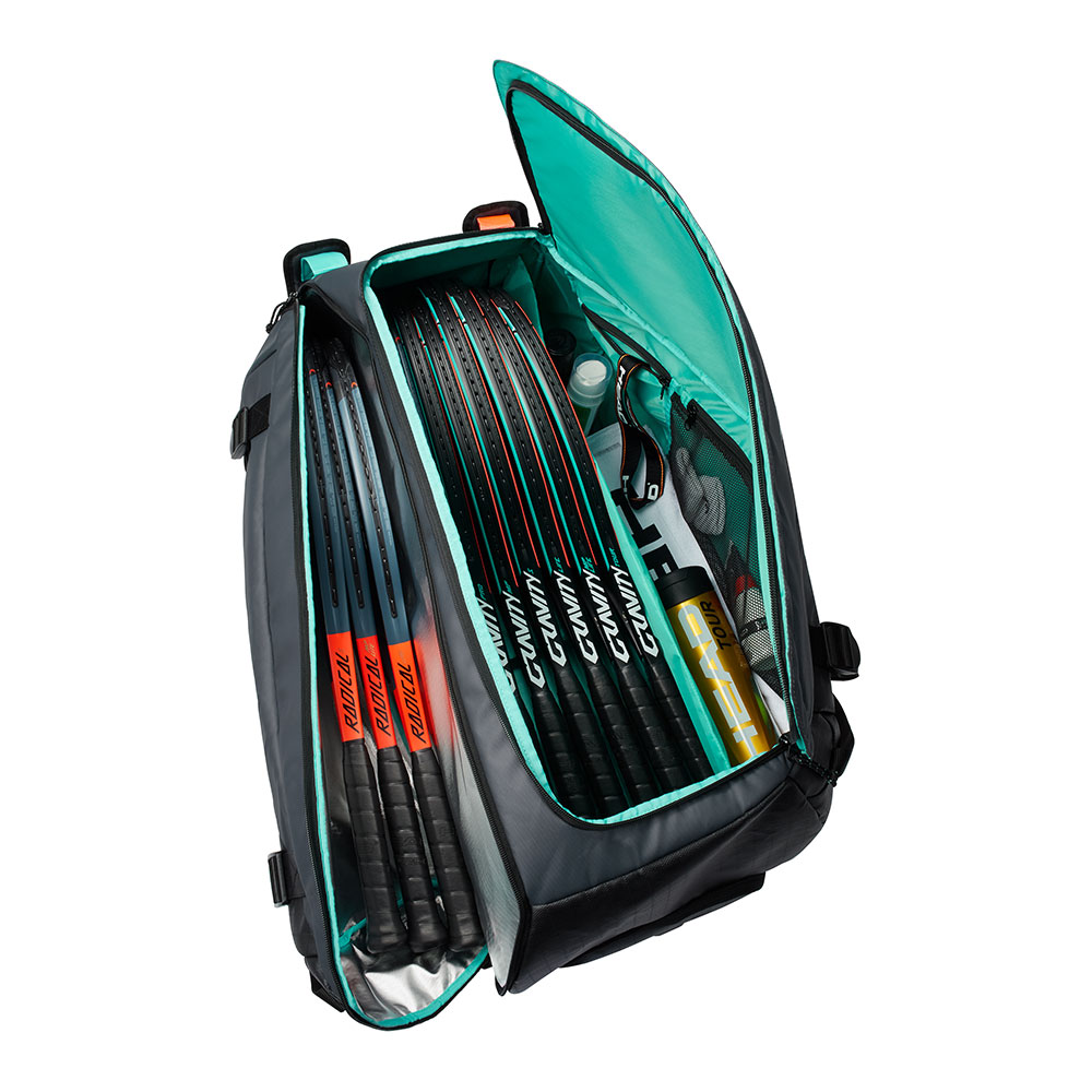 With its fresh design inspired by HEAD's all new GRAVITY racquet series and the adjustable backpack straps, the bag is as pretty as it is functional.