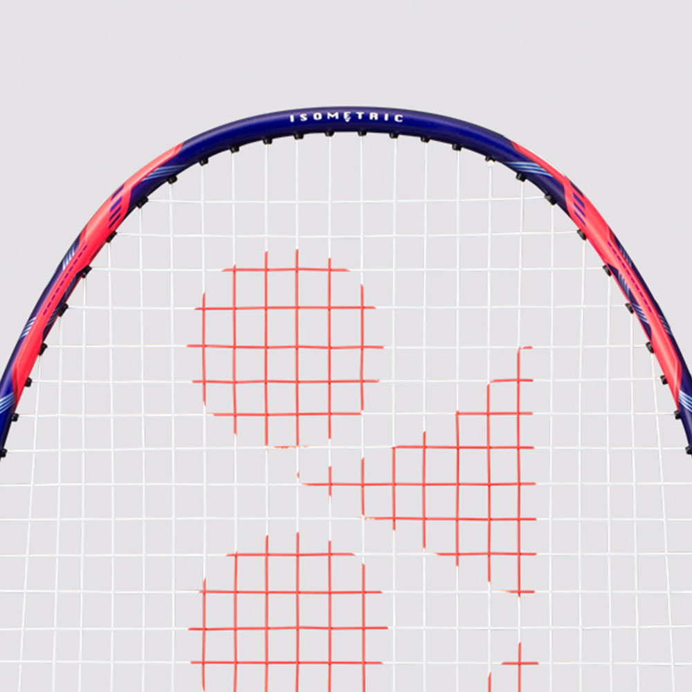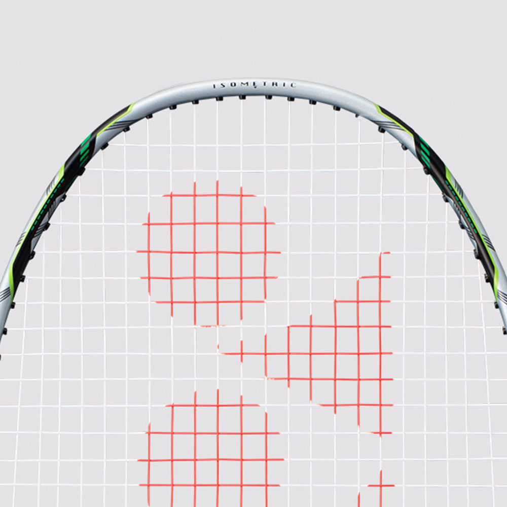 The stiff racket structure at the top of the frame head allows the head to bend in a very controlled way and hold shuttles on the string bed for longer. The thin frame sides then allow the frame to flex more and transfer more energy to the shuttle. This combination allows you to smash with instant power.