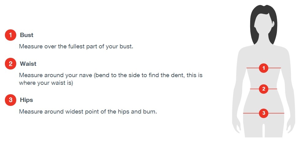 Swimsuit size charts provide excellent guidance, but it's also important that you have your most recent accurate measurements to hand.